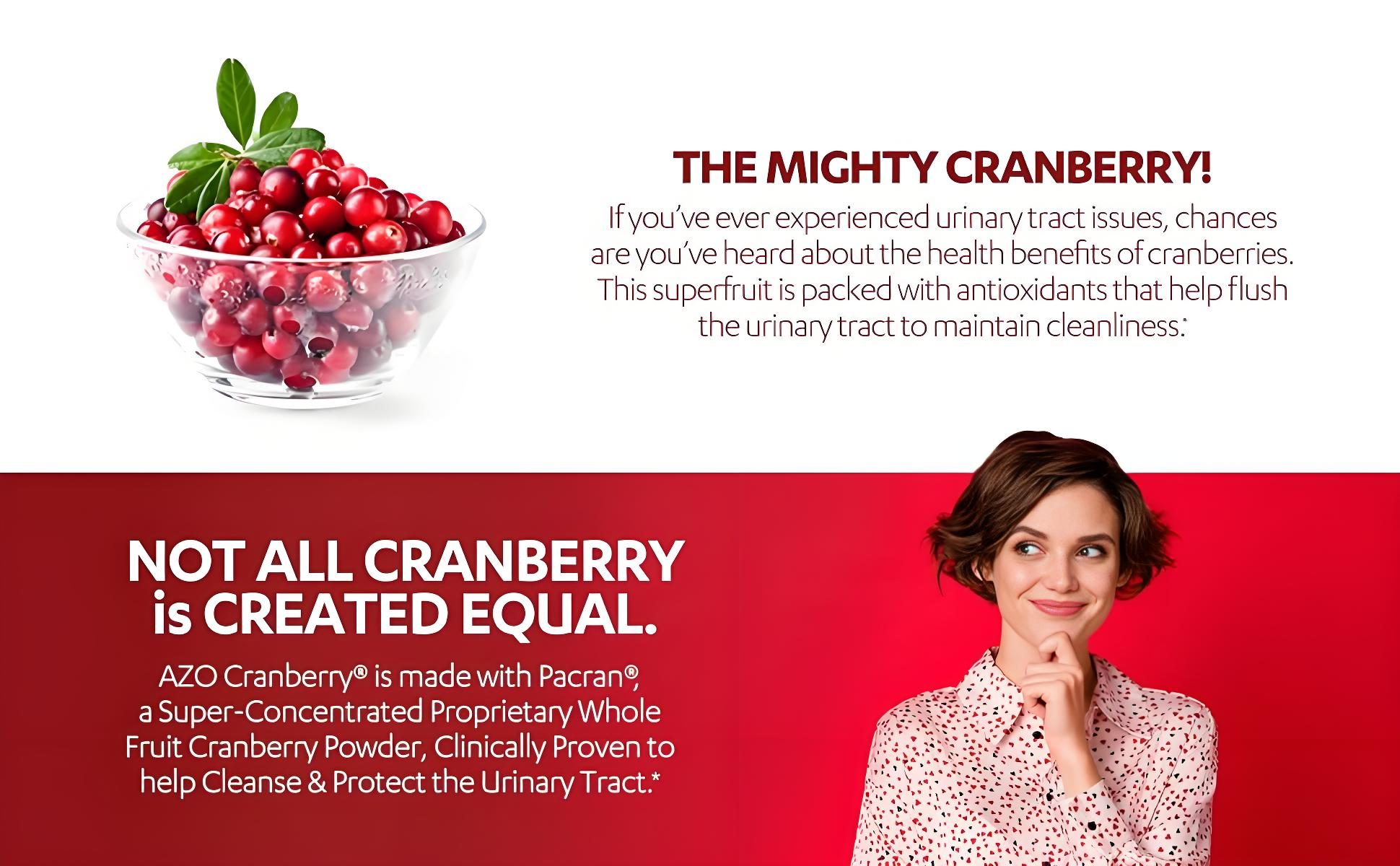 AZO®Cranberry supports a healthy urinary tract by helping to flush the urinary tract to maintain cleanliness.*